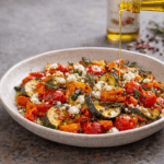 - Coace roșiile cherry la 180°C timp de 15–20 minute, cu puțină sare.