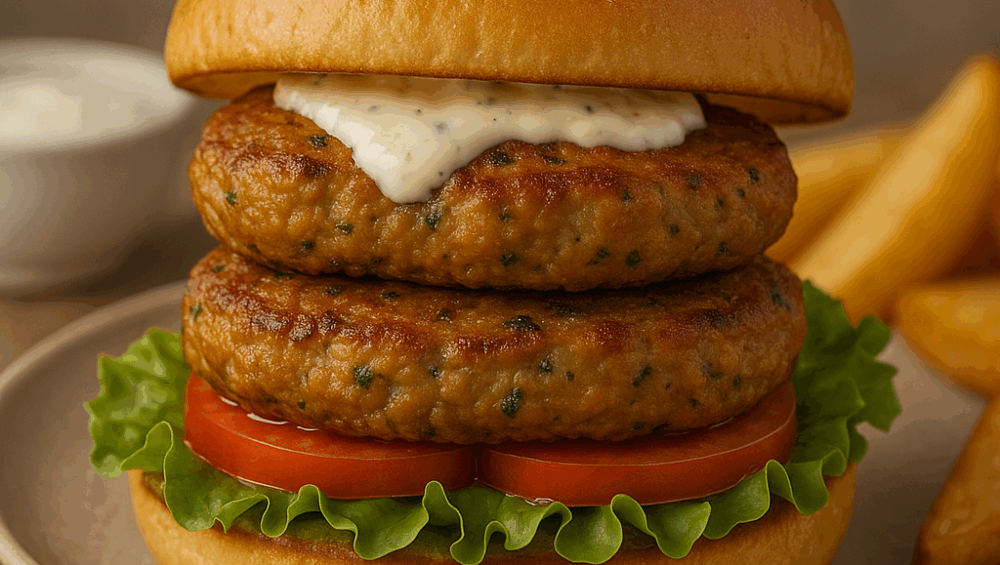 - Amestecă carnea cu Condimentul pentru Chiftele și formează 2 chiftele plate.