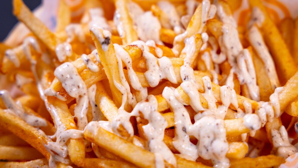 Cartofii prăjiți clasici devin mult mai interesanți atunci când sunt serviți cu un sos cremos și aromat. Este o combinație perfectă pentru gustări rapide sau mese relaxate.