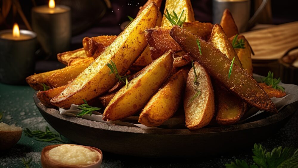 Cartofi aurii, crocanți la exterior, fragezi în interior, cu un gust intens și echilibrat. Perfect ca garnitură sau chiar ca fel principal.