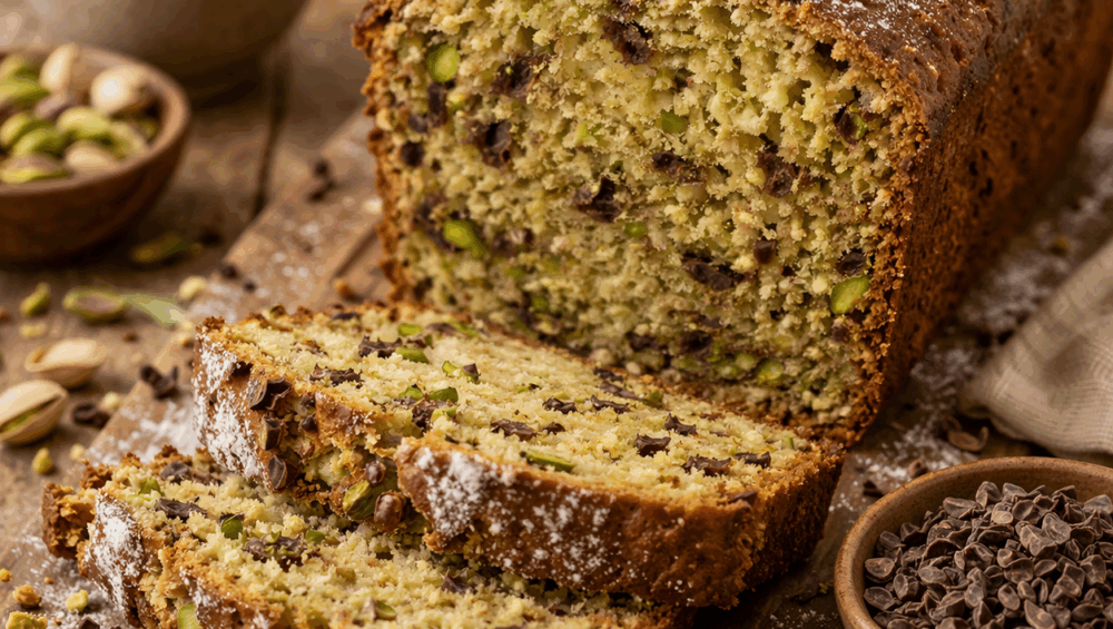 Dacă îți dorești un desert de casă care să arate ca din cofetărie, dar fără efort, acest chec este alegerea perfectă. Textura sa pufoasă, combinată cu bucățile crocante de fistic și cacao nibs, creează un echilibru între dulce, intens și aromat.