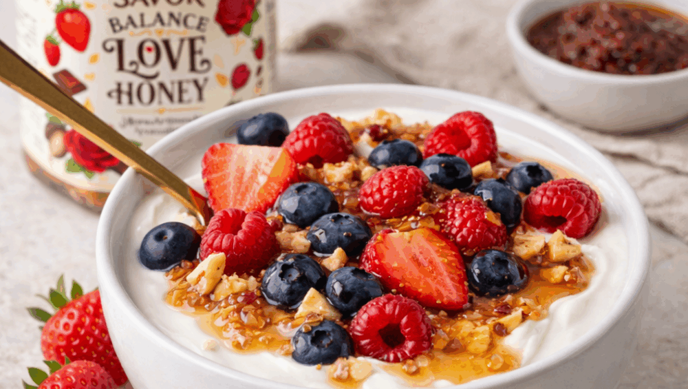 - Completează cu BALANCE LOVE HONEY, amestecând ușor sau lăsând-o ca topping.
