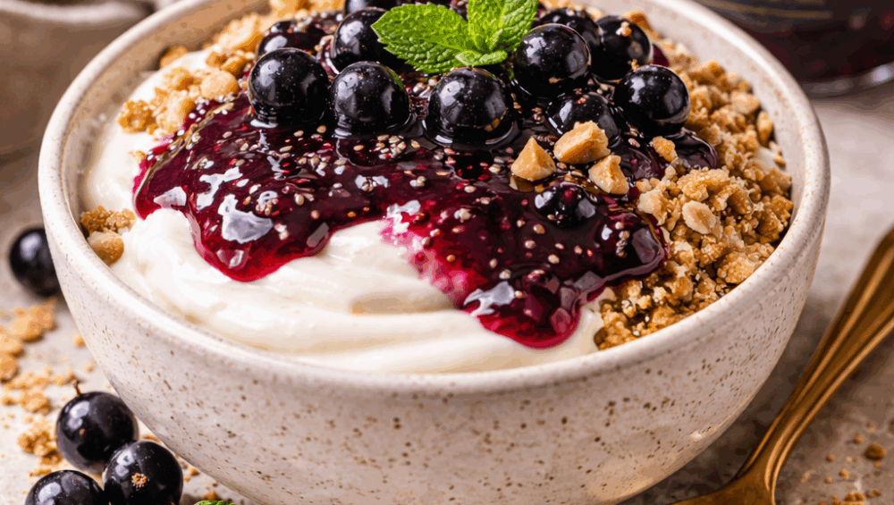 - 3 linguri dulceață de coacăze negre cu chia