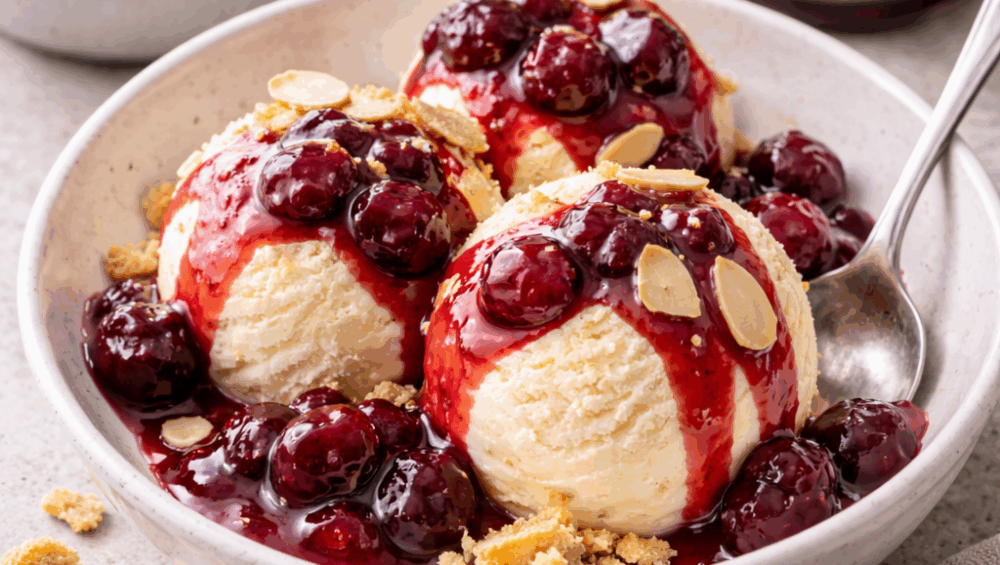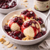 Înghețată de vanilie cu sos cald de dulceață de vișine