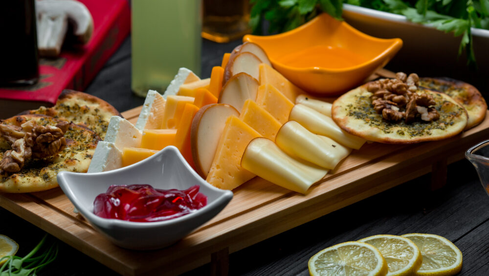 Platou gourmet de brânzeturi cu miere de portocală & rozmarin