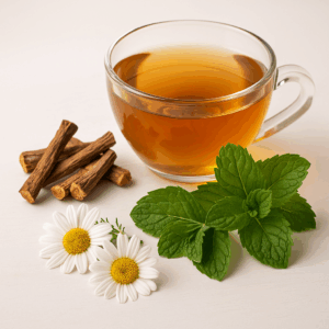 • Calmează inflamațiile și iritațiile căilor respiratorii – Ingredientele precum mușețelul, rădăcina de lemn-dulce și frunzele de mentă au proprietăți antiinflamatoare și emoliente, care ajută la liniștirea mucoaselor iritate și la reducerea inflamațiilor gâtului și bronhiilor. Acest efect aduce un plus de confort celor care se confruntă cu tuse iritativă, senzație de arsură sau disconfort respirator.