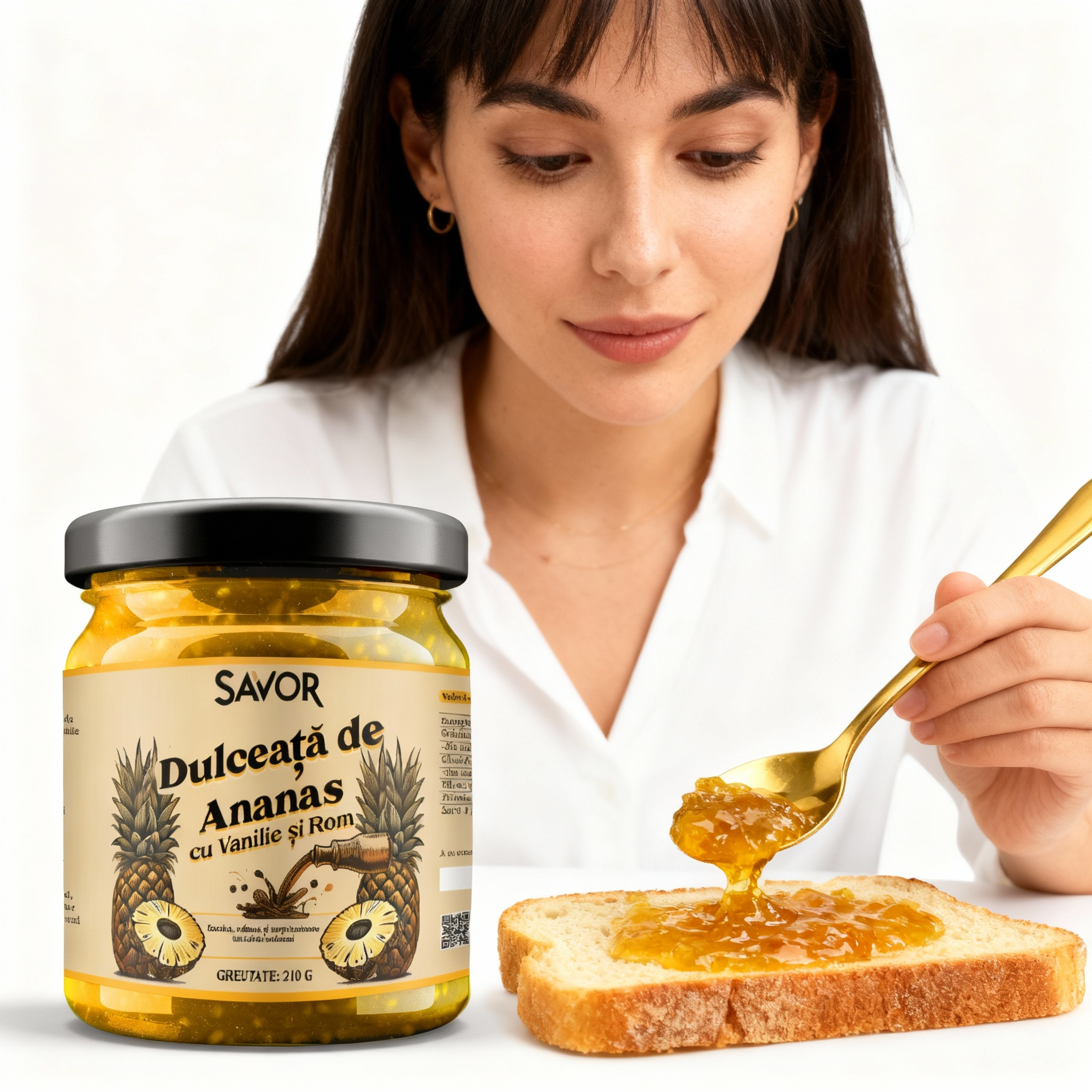 Un desert fin și catifelat, unde textura cremoasă a cheesecake-ului este completată de aroma exotică a ananasului și notele elegante de rom brun. Perfect pentru ocazii speciale.