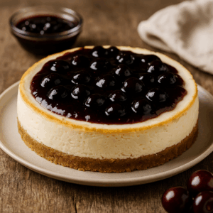 Cheesecake Copt cu Dulceață de Cireșe Negre și Vinars