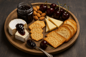 Platou Gourmet cu Brânzeturi și Dulceață de Cireșe Negre