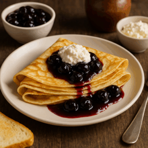 Clătite Fine cu Dulceață de Cireșe Negre și Ricotta
