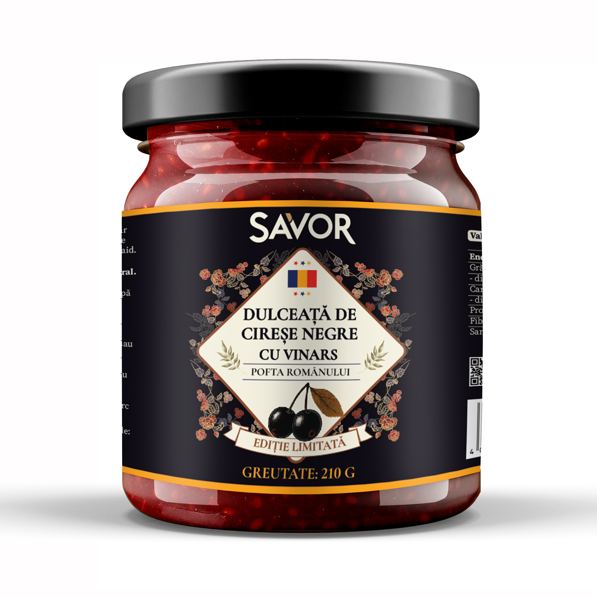 Inspirată din rețetele de demult, Dulceața de Cireșe Negre cu Vinars este un omagiu adus gustului autentic românesc. Fiecare borcan ascunde bucăți generoase de fructe, îmbibate într-un sirop dens, catifelat și aromat. Vinarsul adaugă o notă subtilă de rafinament, transformând dulceața într-o experiență gourmet.