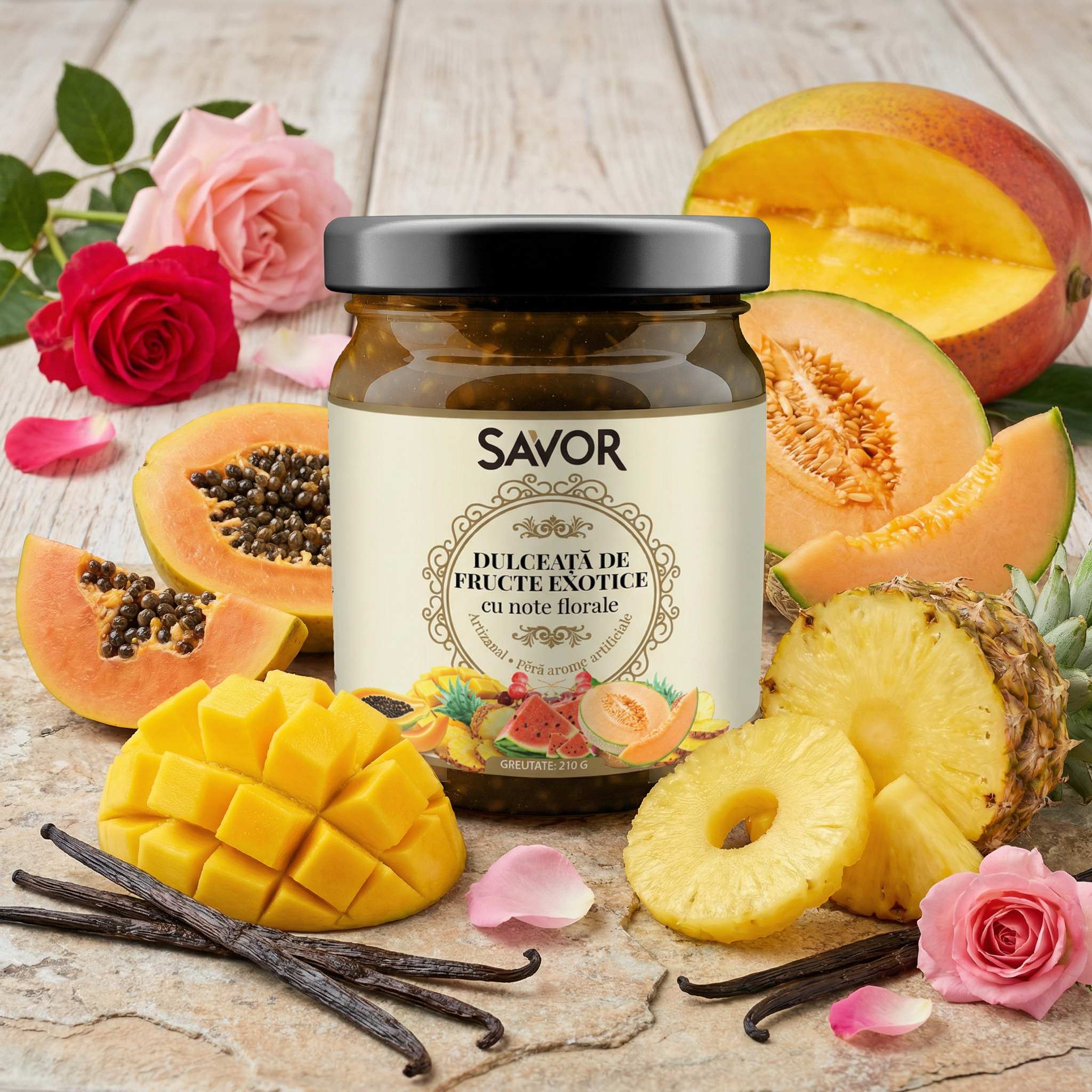 Dulceața de Fructe Exotice cu Note Florale Savor este o experiență gourmet – o poveste despre natură, migală și rafinament. Perfectă când vrei să impresionezi fără efort.
