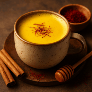 Lapte cu Șofran & Miere (băutură ayurvedică pentru seară)