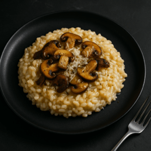 Un risotto cremos, bogat în texturi, în care ciupercile aurii și parmezanul se îmbină perfect cu aromele intense ale uleiului extravirgin cu trufe Black Edition. Ideal ca fel principal elegant sau ca garnitură gourmet.