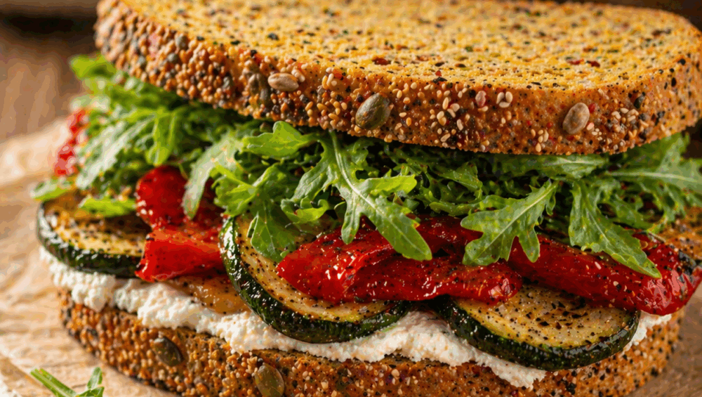 Sandwich Rustic cu Brânză Cremă și Legume Coapte