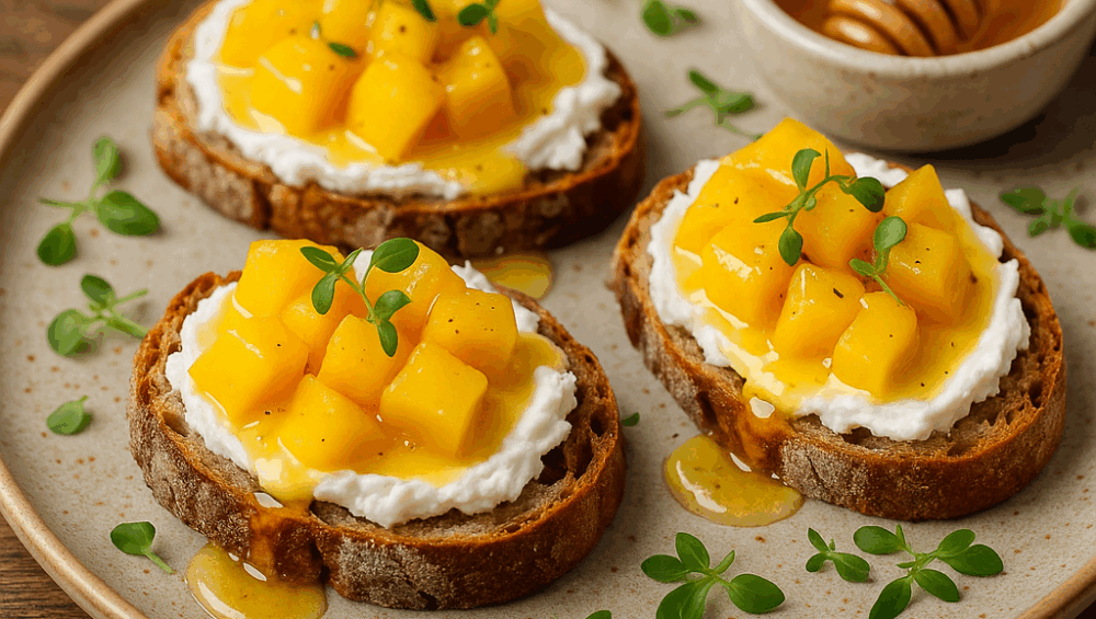 Contrast între crocant, cremos și suculent. Aroma de mango și condimente ridică aperitivul la nivel gourmet.
