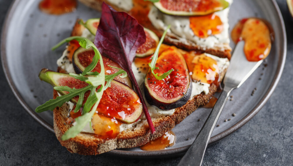 Toast gourmet cu cremă de brânză și dulceață exotică