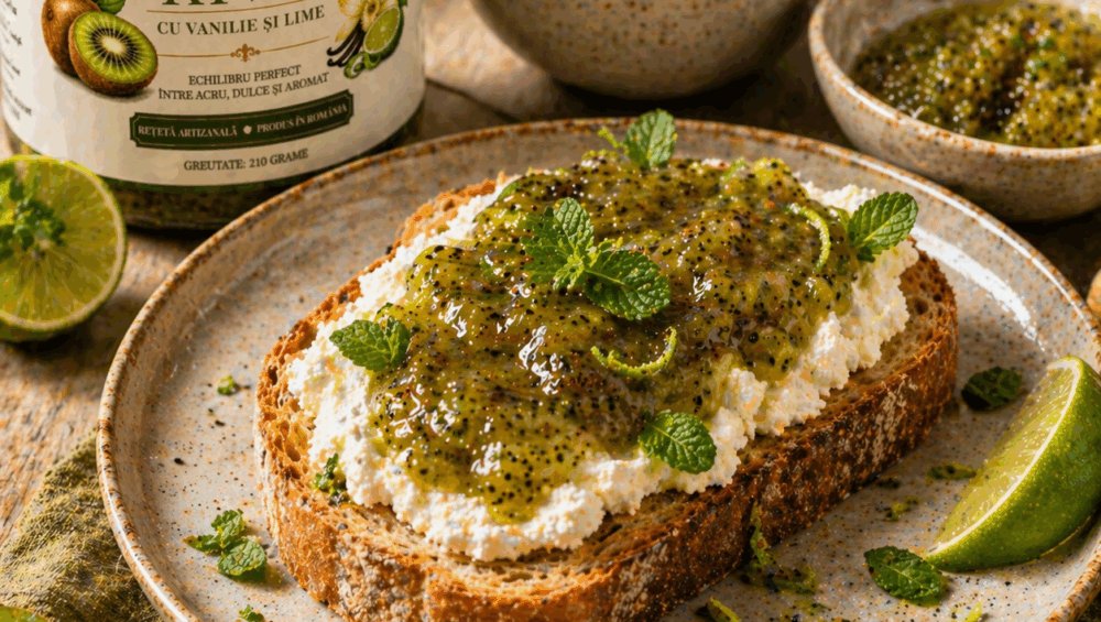 Toast Gourmet cu Ricotta și Dulceață de Kiwi